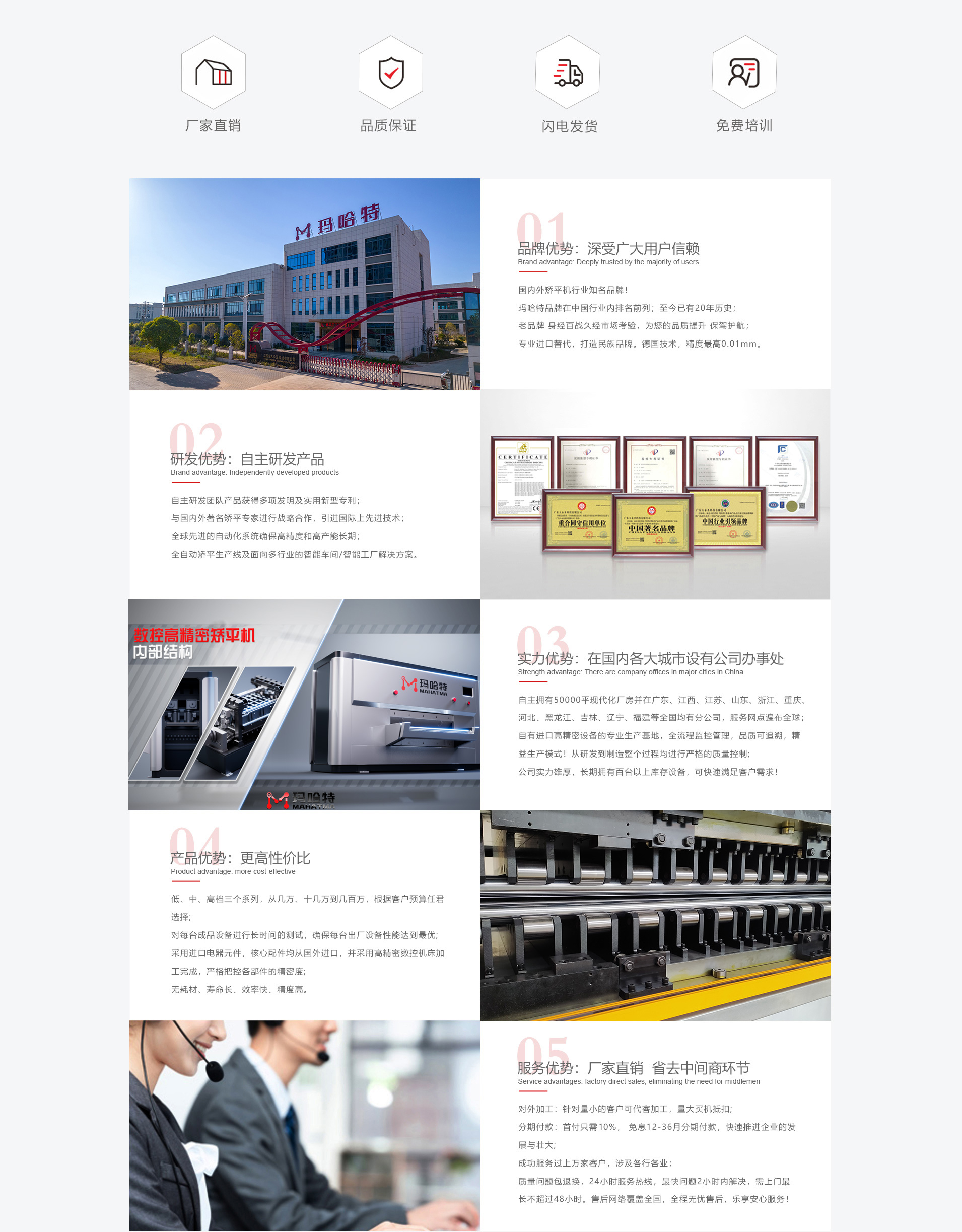 廣東瑪哈特智能裝備有限公司以助力智能制造國產替代與產業升級為使命,自2003年成立以來,在矯平機、自動化產線、智慧系統及配套搭載設備等前沿創新領域,不斷地革新技術產品與解決方案。瑪哈特是一家集研發、生產、銷售、服務四位一體的鈑金零件矯平智造解決方案服務商。是具有全球競爭力的國際高端矯平設備智造領導品牌,同時也是國家高新技術及專精特新企業。瑪哈特作為智慧超級矯平技術設備的品類開創者,實現了從低端到高端矯平設備的全品類覆蓋,且二十余年的行業積累與技術創新,瑪哈特的制造工藝與矯平精度均已達到國際最先進水平。